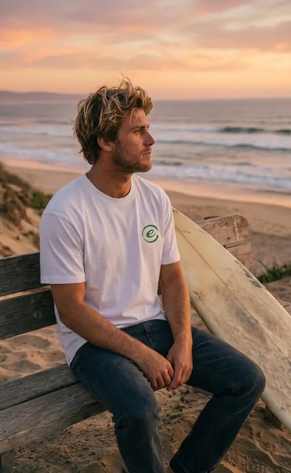Diseño minimal con logo frontal y trasero, cómoda, versátil y perfecta para disfrutar de la playa, el atardecer y el estilo de vida surfera.