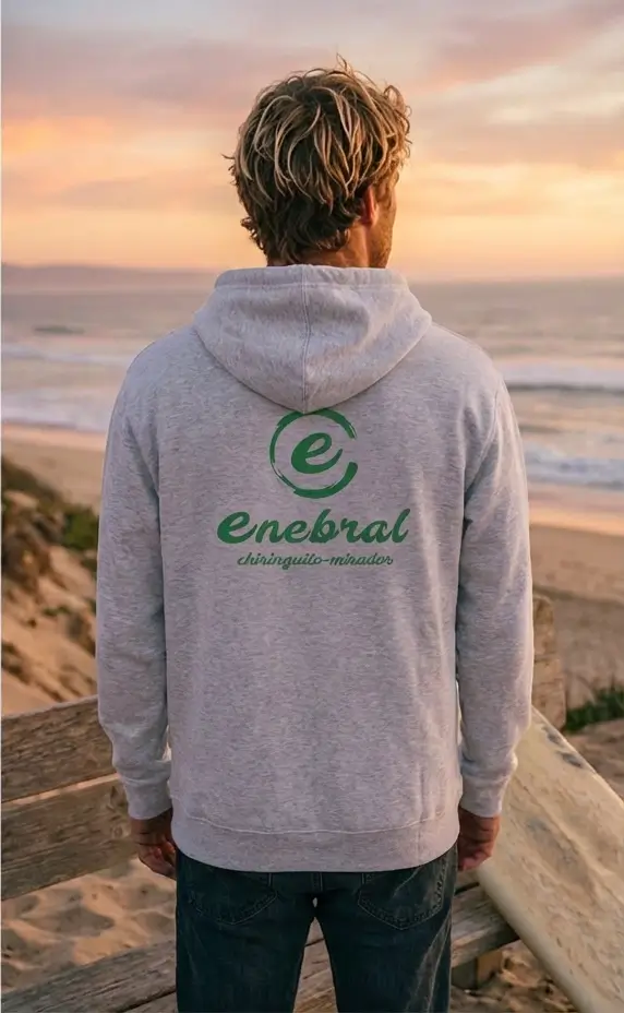 Sudadera gris Enebral Playa de estilo casual y espíritu surfero.