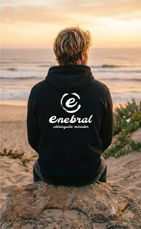 Sudadera negra Enebral Playa de estilo casual y espíritu surfero.